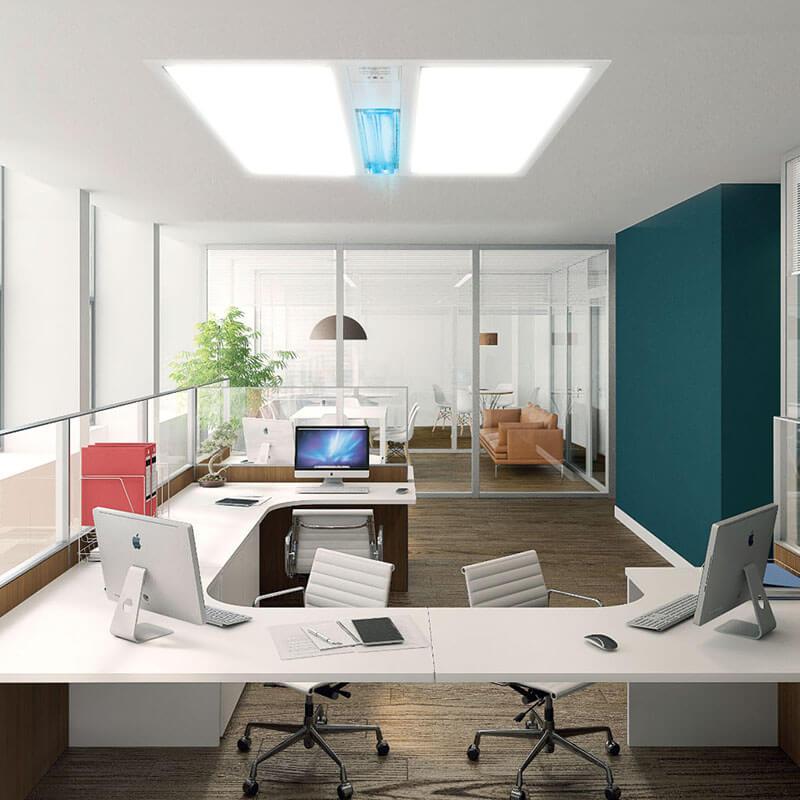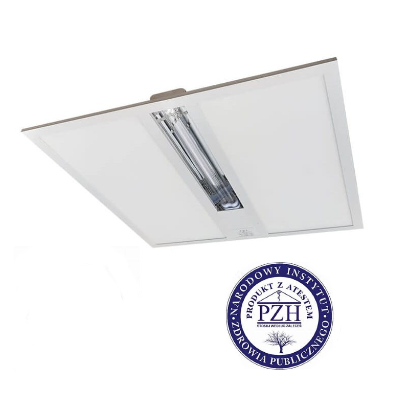 Aseptica ultra to jedyna hybryda na rynku łącząca możliwości panelu LED ze sterylizacją otwartą lampą UV-C. W dowolnej chwili możemy jej używać jako podstawowego nowoczesnego oświetlenia LED lub przełączyć na lampę UV-C, która w ciągu 60 minut wysterylizuje pomieszczenie o powierzchni do 30m2! Lampa jest w pełni bezpieczna i kiedy w trakcie pracy modułu lampy UV-C w jej obrębie pojawi się człowiek lub zwierzę natychmiast wyłączy się automatycznie. ASEPTICA Ultra rozwiązuje problem oświetlenia większości pomieszczeń wymagających wysokiego reżimu sanitarnego. Model podstawowy przewidziany jest do montażu w modułowym suficie podwieszanym lub z użyciem opcjonalnej ramki do montażu nawierzchniowego. Dzięki ustandaryzowanym rozmiarom w łatwy sposób można nią zastąpić większość dotychczas użytkowanych w służbie zdrowia opraw oświetleniowych. Dzięki połączeniu funkcji oświetlenia i sterylizacji w jednym redukuje konieczność umieszczania dodatkowych specjalistycznych urządzeń utrzymując pomieszczenie przejrzystym i łatwym w utrzymaniu porządku i czystości.