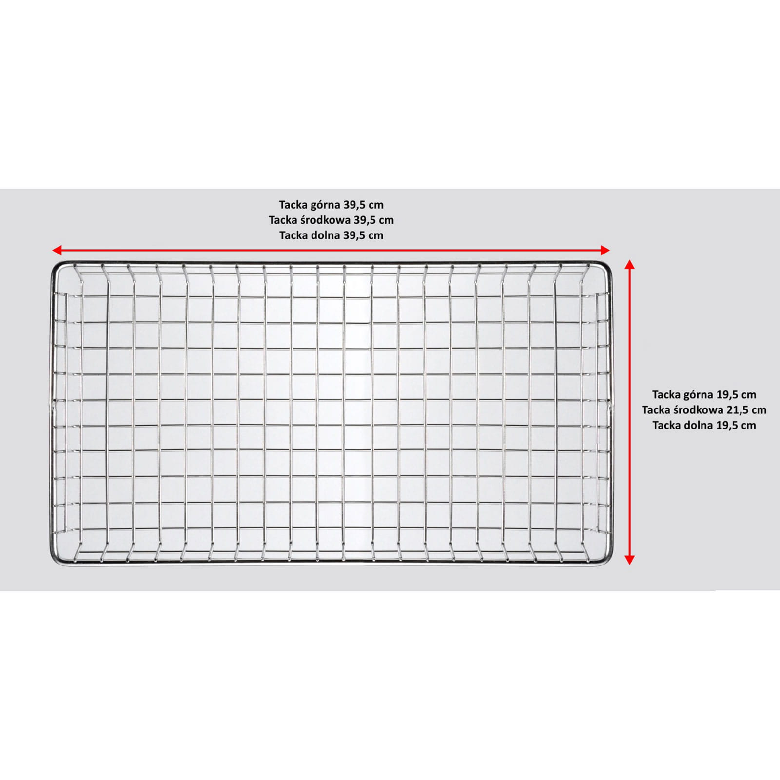 - Wymiary tacek: górna: 19,5 x 39,5 cm | środkowa: 21,5 x 39,5 cm | dolna: 19,5 x 39,5 cm