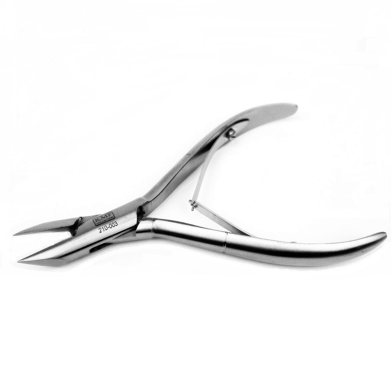 Profesjonalne cęgi renomowanej marki KMF do paznokci. Wykonane ze stali chirurgicznej, zaprojektowane tak, aby zabiegi wykonywane tymi cęgami ułatwiały pracę. Ergonomiczny kształt cążek pozwala na uzyskanie dużej siły cięcia przy niewielkiej pracy dłoni. Cęgi zostały wyposażone w sprężynę listkową ułatwiającą rozwieranie cążek. Długość całych cążek: 12 cm, długość ostrzy: 16 mm