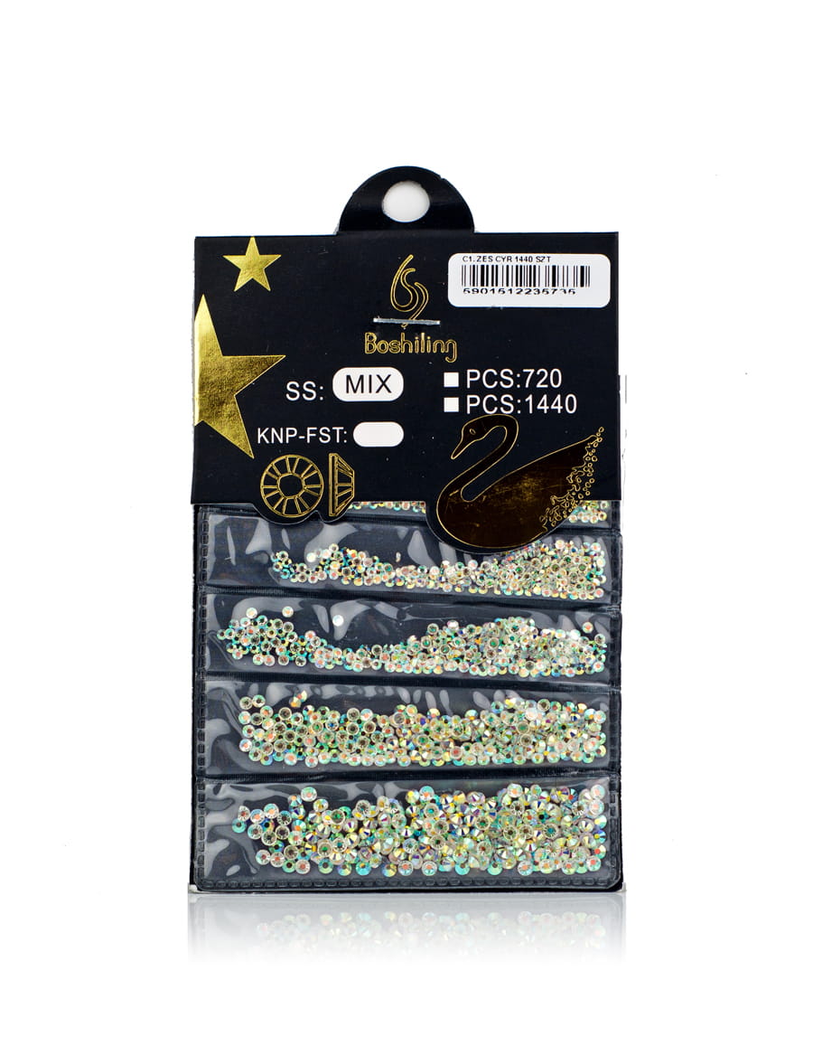 Wyjątkowe cyrkonie do zdobienia paznokci różnymi metodami. Cyrkonie w sześciu różnych rozmiarach, spakowane w osobne przegródki. Opakowanie zawiera 1440 cyrkonii do ozdobienia Twoich paznokci.