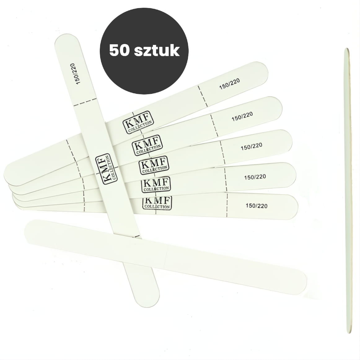 Dwustronny Pilnik do Paznokci KMF z Perforacją Biały SLIM #150/220 MINI - 50 Sztuk