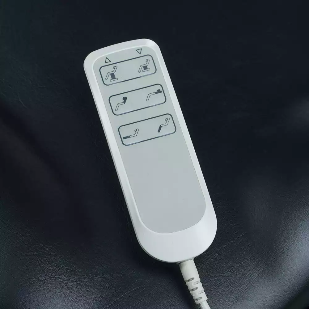 Elektrycznie regulowana wysokość siedziska, kąt podparcia pleców i podnóżek.
