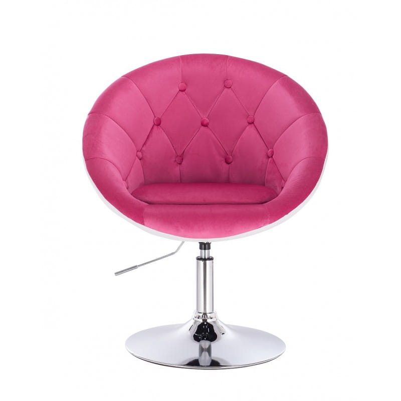 Fantazyjny i zarazem elegancki model – łączy właściwości użytkowe z luksusowym wzornictwem. Głębokie, wygodne siedzisko wykończone przyjemnym welurem. Do wewnętrznej strony oparcia dla podniesienia walorów estetycznych zostały przymocowane guziki tapicerskie. Tył fotela wykończony sztuczną skórą. Ten nietuzinkowy mebel będzie doskonałym akcentem podkreślającym estetykę domowego wnętrza, biura czy też gabinetu kosmetycznego.