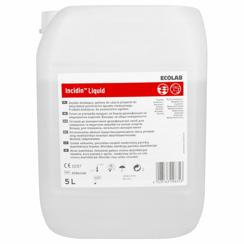Incidin Liquid to szybko działający, alkoholowy preparat dezynfekcyjny przeznaczony do profesjonalnej dezynfekcji powierzchni i wyposażenia medycznego. Produkt nie zawiera aldehydów, szybko wysycha bez pozostawiania smug i charakteryzuje się przyjemnym zapachem.