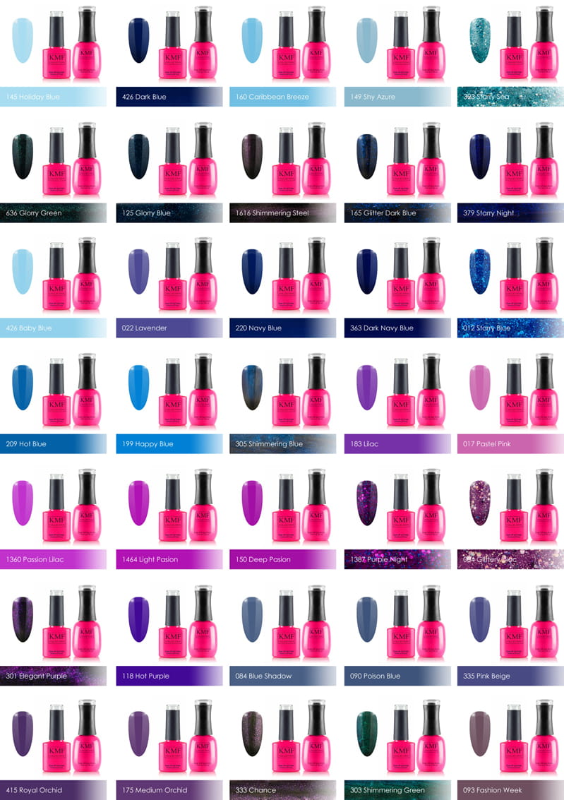 Lakier hybrydowy KMF jest lakierożelem nowoczesnej generacji o kremowej, łatwej do nakładania konsystencji, utwardzanym zarówno w lampie LED (30-60sekund) jak i tradycyjnej UV (2 minuty). Kolory są bardzo nasycone, niejednokrotnie wystarcza nałożenie jednej warstwy.
