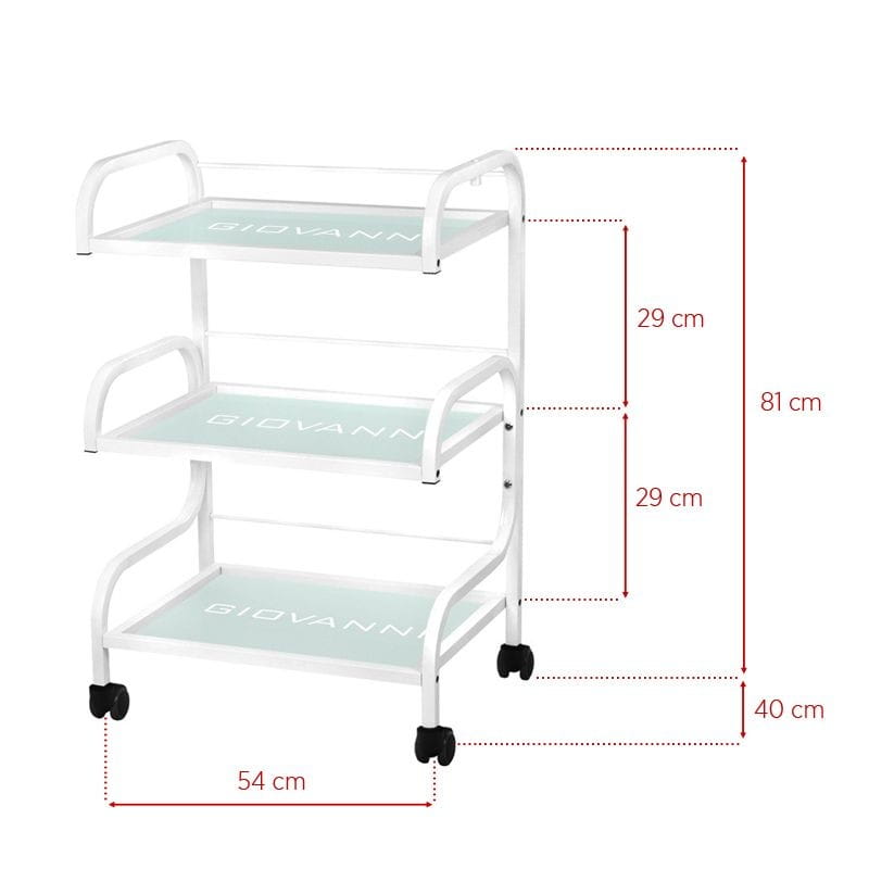 z kółkami. Posiada trzy szklane półki z grawerowanym logo GIOVANNI.