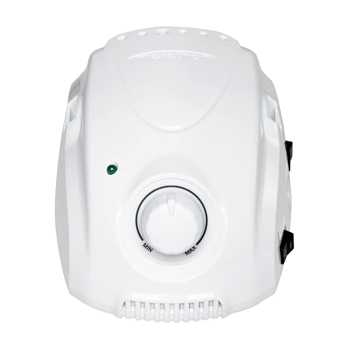 Regulacja prędkości przy użyciu pokrętła jest możliwa do 35 000 obrotów na minutę, co pozwala na dostosowanie do indywidualnych potrzeb, a co za tym idzie komfortowe wykonywanie szerokiej gamy zabiegów. Dodatkowo dioda kontrolna świeci w kolorze zielonym, ułatwiając rozpoznanie, czy frezarka pracuje na minimalnych obrotach. Praca z urządzeniem jest wyjątkowo łatwa, efektywna oraz intuicyjna, co zostanie docenione również przez bardziej wymagających użytkowników.