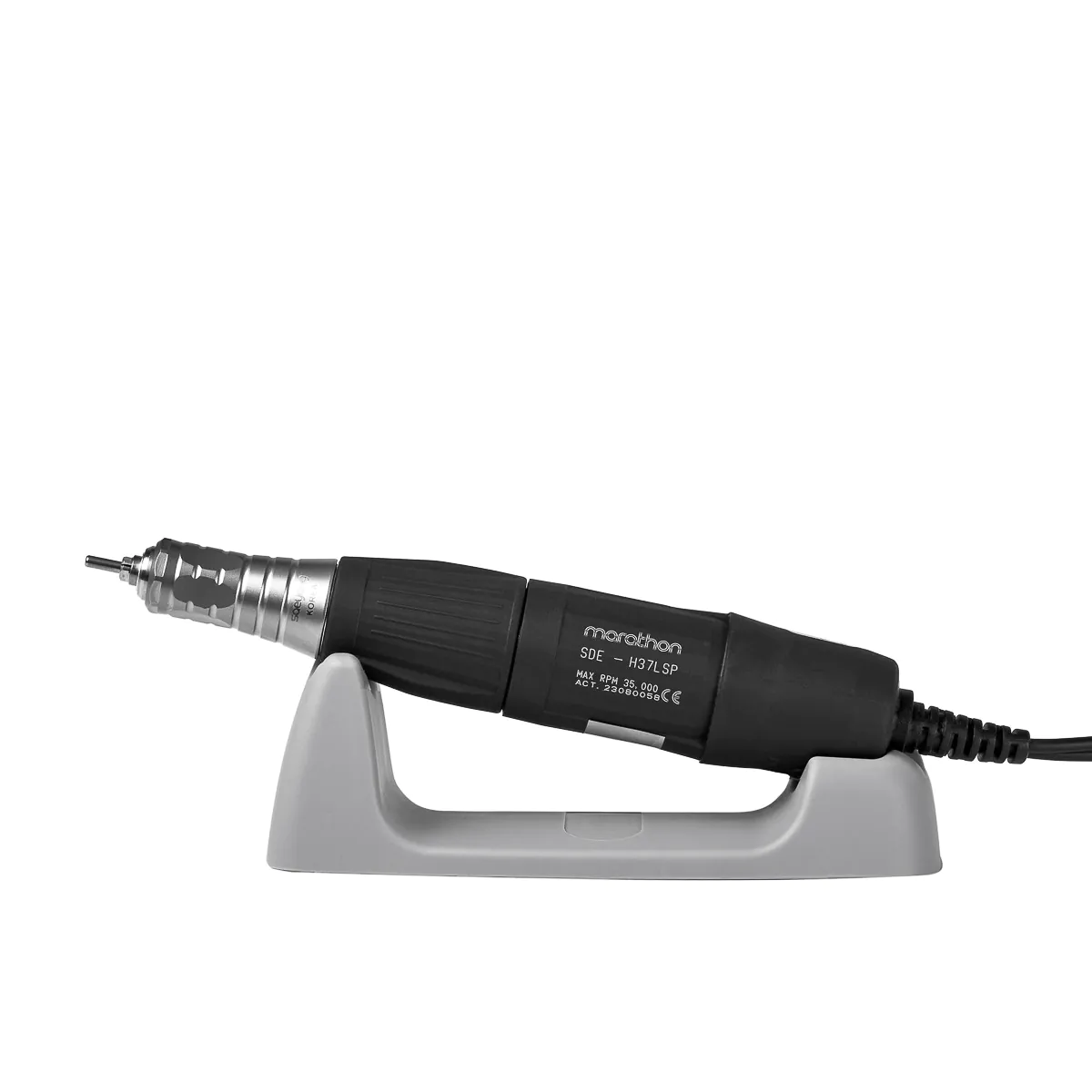 Precyzyjna głowica H37LSP doskonale leży w ręce, co gwarantuje wysoki komfort użytkowania. Osiąga maksymalną prędkość 35 000 obrotów na minutę, wpływając na efektywność pracy. Głowica została wyposażona w prosty w obsłudze system Twist-Lock, co pozwala na szybką i płynną wymianę frezów. Element jest odpowiednio wyważony i ergonomicznie wyprofilowany, a dodatkowo drgania głowicy zostały ograniczone, dzięki czemu nawet wielogodzinna praca z frezarką nie męczy nadmiernie ręki. Plastikowa obudowa ogranicza przepływ ciepła, dzięki czemu nagrzewanie urządzenia nie jest odczuwalne. Elastyczny kabel sprężynka zapewnia wysoki komfort pracy, osiągając nawet 135 cm długości przy znacznym rozciągnięciu.