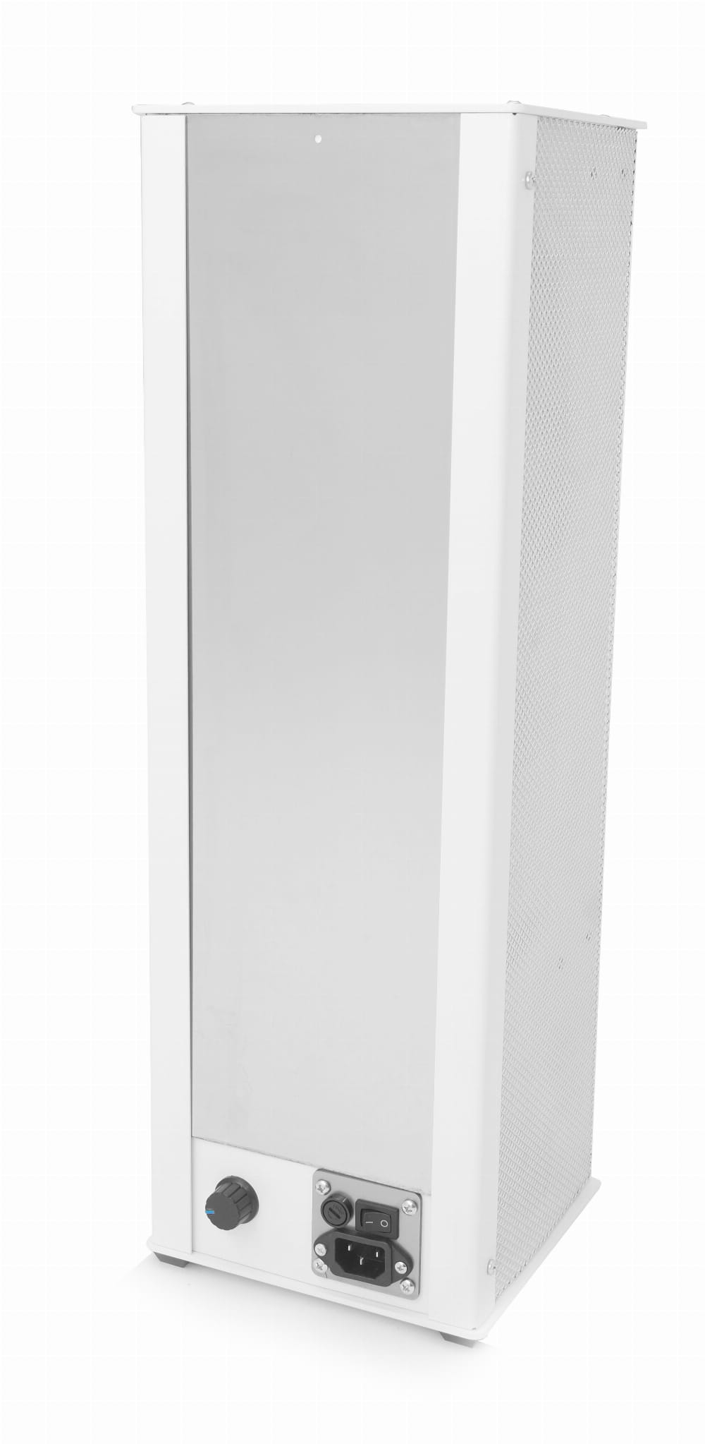 Sterylizator strumieniowy Hebe wyposażony jest w elektro oszczędne lampy emitujące promieniowanie UV-C. Promieniowanie UV-C skutecznie likwiduje chorobotwórcze drobnoustroje – wirusy, bakterie, drożdże i pleśni. Lampy, wykorzystane w urządzeniu, pozbawione są pasma od 100 do 230 nm emitującego ozon. Dzięki temu, możliwa jest bieżąca sterylizacja powietrza, bez konieczności opuszczania pomieszczenia.
