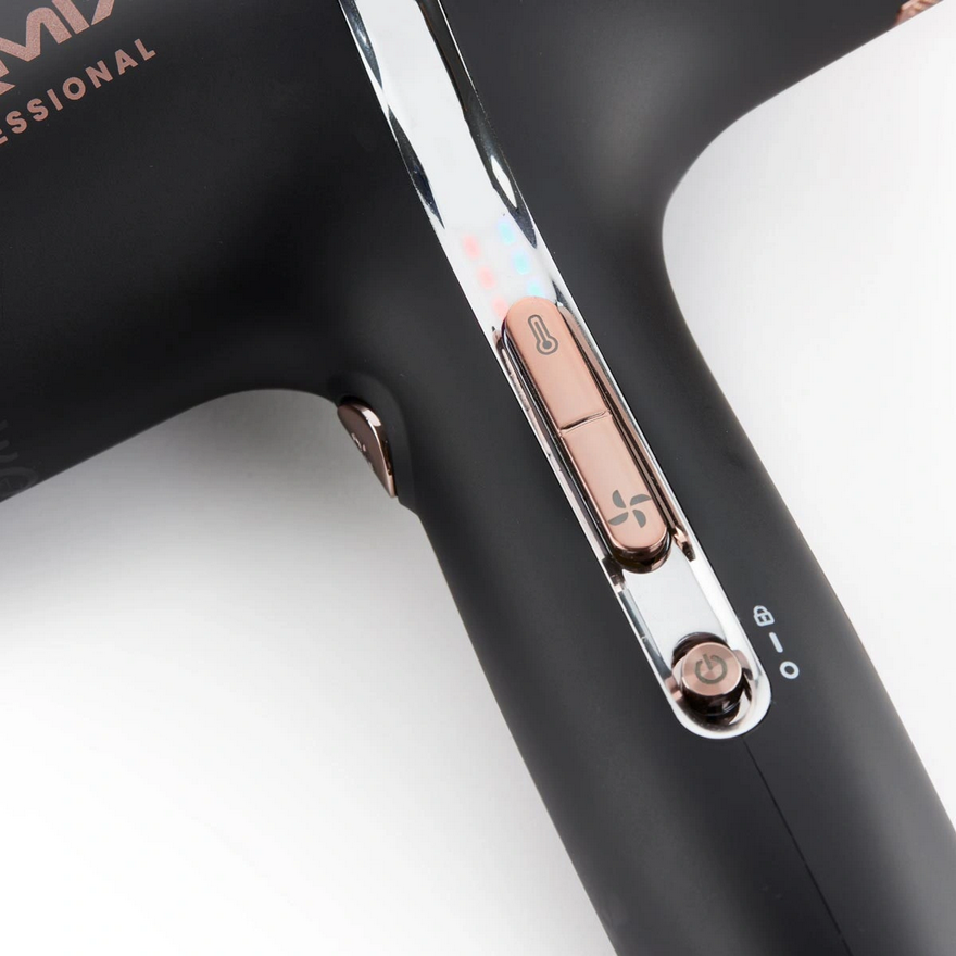 - Suszarka posiada 3 poziomy temperatury, 3 poziomy przepływu powietrza oraz przycisk zimnego powietrza, co pozwala dostosować ją do każdego rodzaju włosów