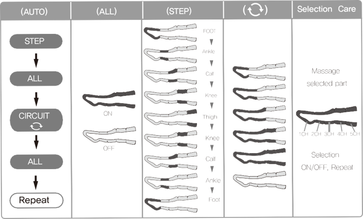 Urządzenie posiada w 4 programy oraz program automatyczny, który łączy wszystkie techniki ucisku.